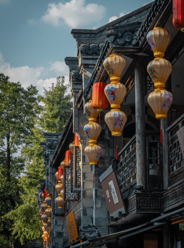 Jinli Old Street: Jinli Old Street is a vibrant pedestrian street reconstructed in the style of Qing Dynasty architecture, designed to evoke the atmosphere of the ancient Shu Kingdom. Lined with red lanterns, wooden facades, and traditional storefronts, it offers a lively mix of souvenir shops, handicraft stalls, and food vendors. Visitors can browse intricate Shu embroidery, folk art, and calligraphy, or sample Sichuan snacks like spicy tofu pudding, dan dan noodles, and sweet glutinous rice balls. The street comes alive in the evening with glowing lanterns and bustling crowds.