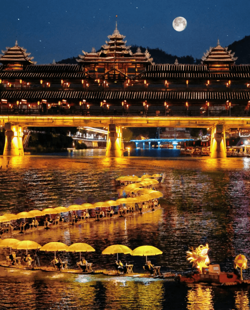 Escape the city on this 3-day hidden gem adventure to Lichuan, Enshi, and Xuan’en. Explore the colossal Tenglong Cave, Asia’s largest dry limestone cavern, then wander through the 460‑million‑year‑old Suobuya Stone Forest. As night falls, experience Xuan’en’s illuminated Wenlan Bridge and a dreamy bamboo raft ride on the Gongshui River. On the final day, drive across the famous floating bridge at Shiziguan, gliding just above the water surrounded by karst peaks and serene green valleys. Perfect for nature lovers and photographers seeking a short but spectacular escape.